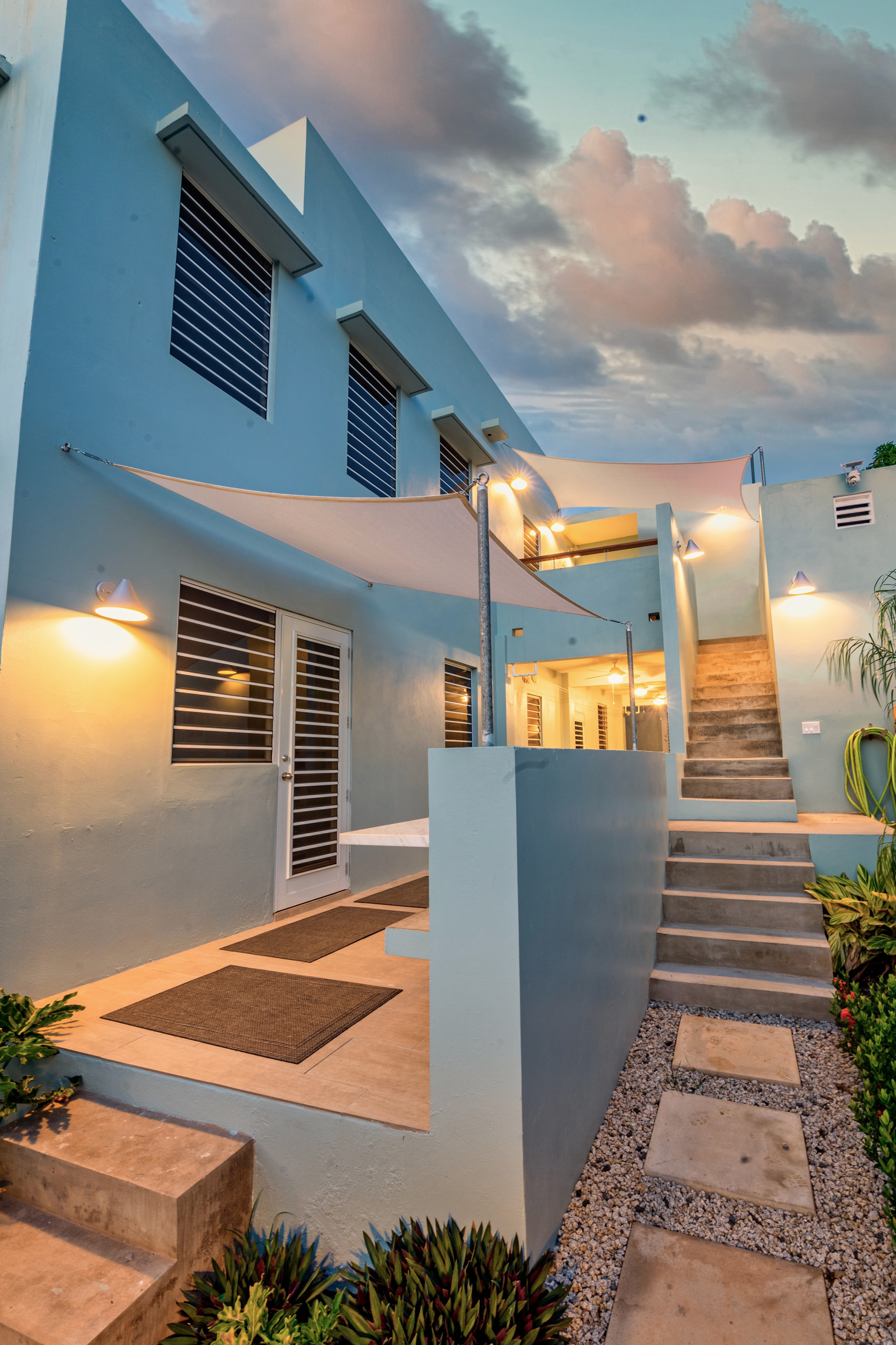 EcoCasa Vieques is a walled compound having two environmentally sustainable rental units (1-Ground Floor Two-Bedroom with outdoor terraces/gardens and 1-Upper Level Three-Bedroom unit with ocean view roof deck), a caretaker's cottage, on-site washer dryer/storage, a naturally ventilated (covered) carport, sustainable gardens, and outdoor terrace spaces to accommodate outdoor lounging and dining. EcoCasa Vieques is designed to be a zero-carbon footprint residential quarters for those interested in vacationing on a beautiful natural island with the world’s most beautiful beaches, snorkeling, fishing, hiking trials, an amazing Bio-Luminescent Bay, wild horses, beautiful/interesting natural fauna, tourist attractions, lovely island charm, all with the ability to live simply and sustainably.